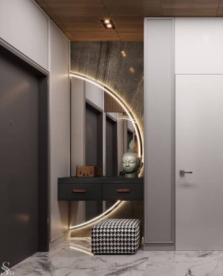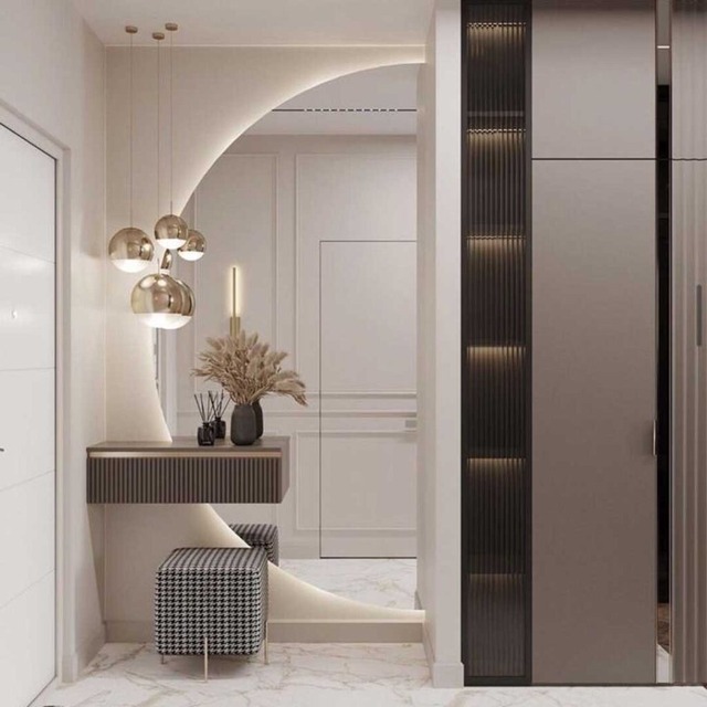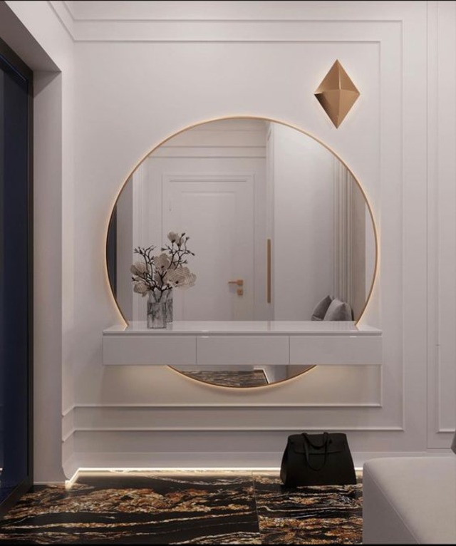 · ورودیِ با حال میسازه: اولین چیزی که با ورود به خونه میبینین همینه. یه تابلوی زیبا که هم آیینهست، هم میز.